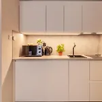 객실에는 작은 부엌뿐만 아니라 발코니, 소파, 커피 및 티 메이커도 마련되어 있습니다. 객실은 쪽모이 세공 바닥으로 마감되어 있습니다. 개별 변기, 샤워도 제공됩니다.